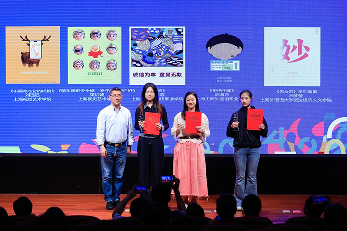 上海杉达学院艺术设计与传媒学院副院长万轩为优秀指导教师颁奖
