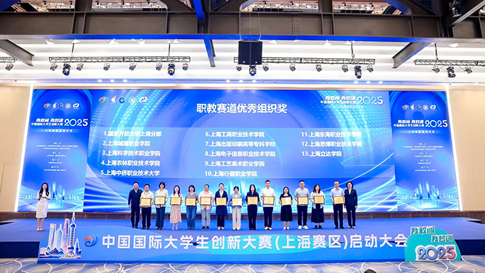 在5月28日举行的2025年中国国际大学生创新大赛上海赛区启动大会上,我校创新创业工作获得重要表彰。金融2301班郑诗琦同学作为“至臻云胆”项目负责人,代表团队接受上届大赛上海赛区金奖表彰;创新创业学院院长胡凤麟代表学校领取“优秀组织奖”荣誉证书。