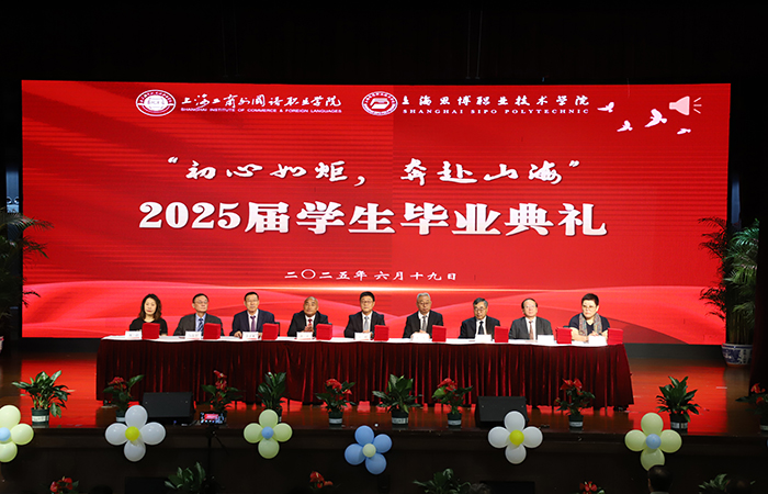6月19日上午,上海思博职业技术学院与上海工商外国语职业学院在思博大礼堂联合举行2025届毕业生毕业典礼。作为两校办学史上首次联合典礼,以“初心如炬,奔赴山海”为主题,“溯光而行”“衔光以谢”“追光而往”三大篇章系统展现职业教育成果,4555名毕业生带着工匠初心,启程奔赴人生新赛道。