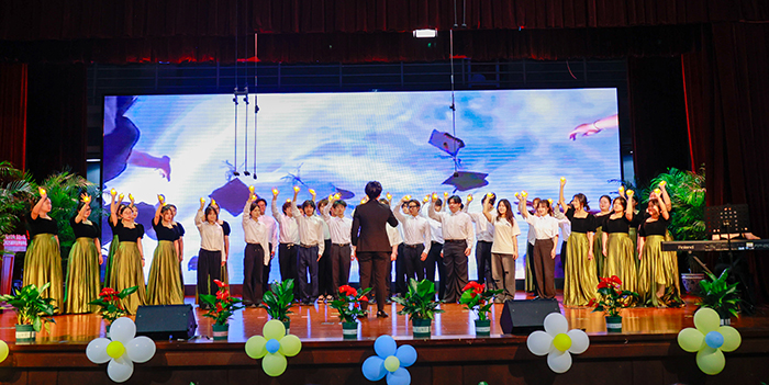 合唱《世界赠予我的》、毕业舞蹈《青春放映厅》与师生朗诵《盛夏不落幕,扬帆正启航》将典礼推向高潮,激昂的旋律与铿锵的语句,充满了对未来的憧憬与祝福。