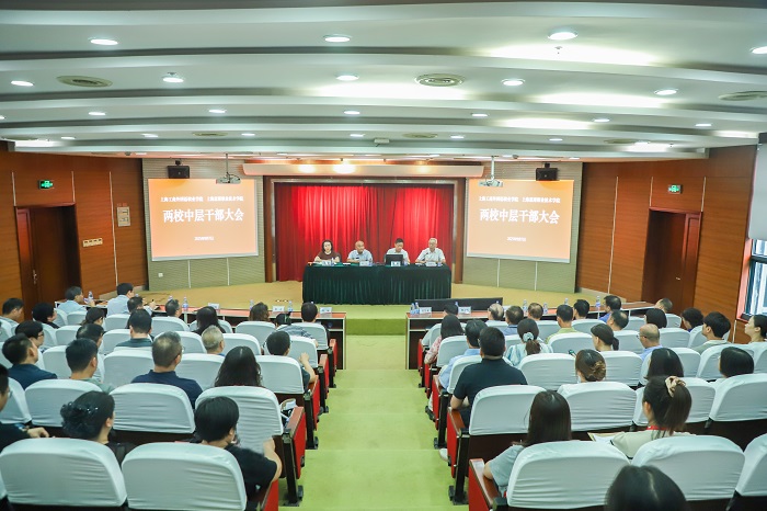 9月7日下午,两校召开2025年秋季学期开学干部大会,深入传达上级会议精神,全面部署新学期重点工作,两校党政领导班子、全体中层干部(含副职和助理)参加会议,上海工商外国语职业学院校长姚秀平主持会议。