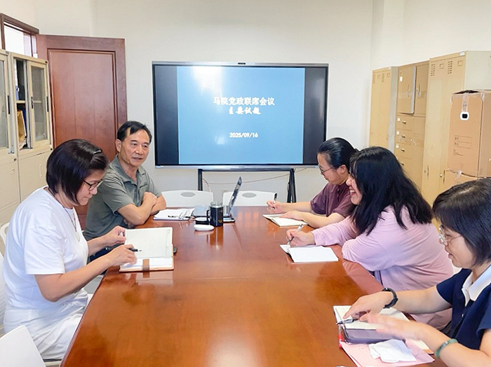 9月16日下午,学校马克思主义学院召开新学期首次党政联席会议,会议由学院院长何玉海主持,常务副院长沈李、副院长陈静、倪丽娜等学院党政班子全体成员参加会议。
