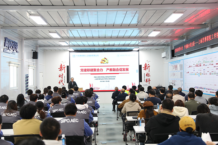 为深入学习贯彻《习近平谈治国理政》第五卷精神及党的二十届四中全会部署要求,推进党建与产教融合深度融合,11月4日,学校工学院党支部与中建八局东方枢纽上海东站项目党支部联合开展“党建联建聚合力 产教融合促发展”主题学习活动。校长黄正带领工学院全体教师及学生入党积极分子代表100余人赴项目现场,实地感受国家重大工程建设成果,共绘校企协同发展新蓝图。