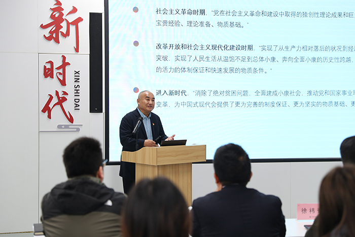 联合学习会上,黄正校长以《深学细悟治国理政精髓 以产教融合助力中国式现代化》为题讲授专题党课。他系统阐释了《习近平谈治国理政》第五卷和党的二十届四中全会关于教育、科技、人才工作的重要论述,强调要坚持和加强党对职业教育的全面领导,推动教育教学与产业需求紧密对接。黄校长指出,要将课堂搬到工地一线、把专业建在产业链上,切实提升师生实践能力与综合素养,实现“教学相长、知行合一”,为中国式现代化培养更多高素质技术技能人才。结合学校工学院专业特色与中建八局行业优势,黄校长表示,党建联建是深化产教融合的“红色引擎”。学校将以此次共建为契机,与中建八局等行业龙头企业进一步拓展合作领域,共建人才培养基地、共促技术研发与就业衔接,把党的组织优势转化为育人实效、发展动能。参与师生深受鼓舞,教师们表示将把一线技术标准和工程案例融入课程,增强教学实效性与前瞻性;学生入党积极分子则表达了对投身国家建设的强烈愿望,立志以党员标准要求自己,努力成长为堪当民族复兴大任的时代新人。
