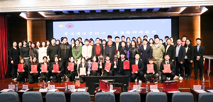 颁奖环节庄重而热烈。校长黄正、副校长张辉、法务部主任何敏、上海市华诚律师事务所王东升律师依次为获奖队伍颁发荣誉奖杯与证书。奖杯熠熠生辉,学子笑容灿烂,这一刻,既是对选手优异表现的肯定,也是对法治理念的传承与弘扬。全场掌声雷动,为所有参赛选手的拼搏与智慧喝彩,也为这场法治教育盛会画上圆满句点。