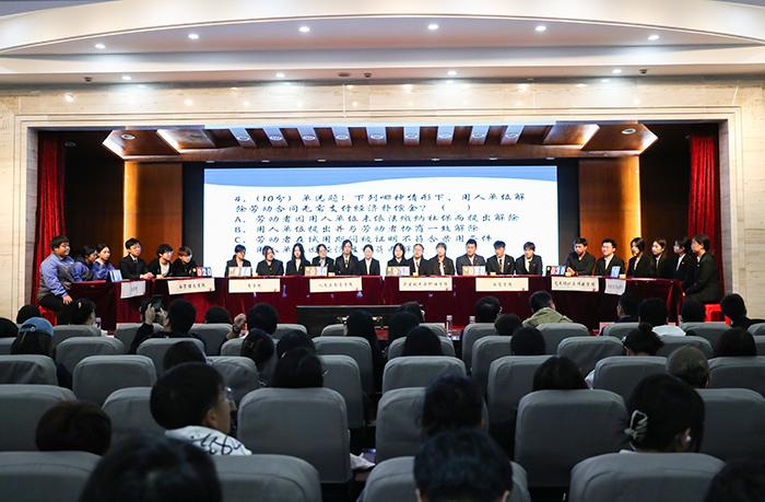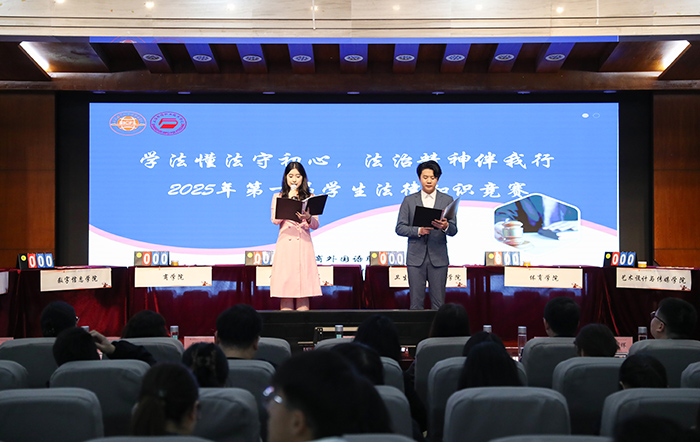 在复赛环节,从初赛中脱颖而出的8支队伍围绕“基础必答”“选答争分”两大环节激烈比拼。选手们沉着冷静、对答如流,展现出扎实的法律知识储备和良好的团队协作精神。经综合评分,数字信息学院、商学院、人文与教育学院、工学院、艺术设计与传媒学院五支代表队凭借出色表现成功晋级决赛。
