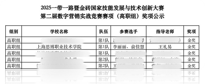 我校商学院学子斩获2025一带一路暨金砖国家技能发展与技术创新大赛之数字营销实战竞赛赛项(高职组)全国总决赛金奖