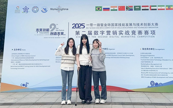 11月8日,2025一带一路暨金砖国家技能发展与技术创新大赛——第二届数字营销实战竞赛赛项全国总决赛在广东东莞圆满落幕。我校商学院国商2402-贯通班学生李丽丽、俞佳慧在教师王礼易的指导下,斩获该赛项(高职组)全国总决赛金奖、总分排名全国第二的佳绩。