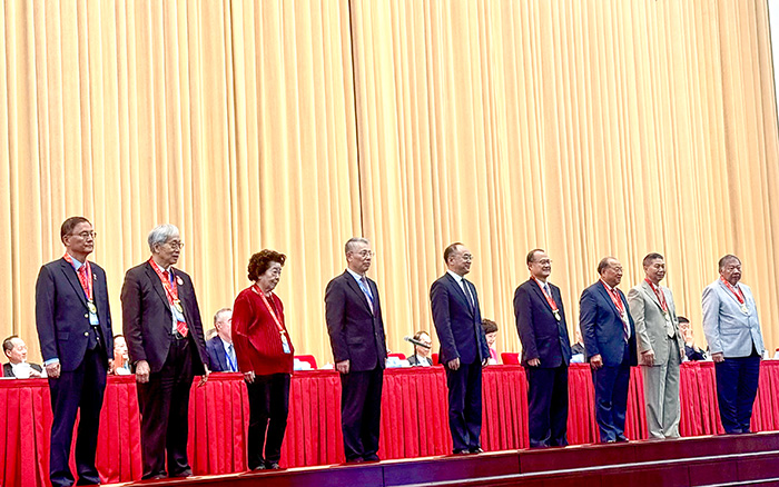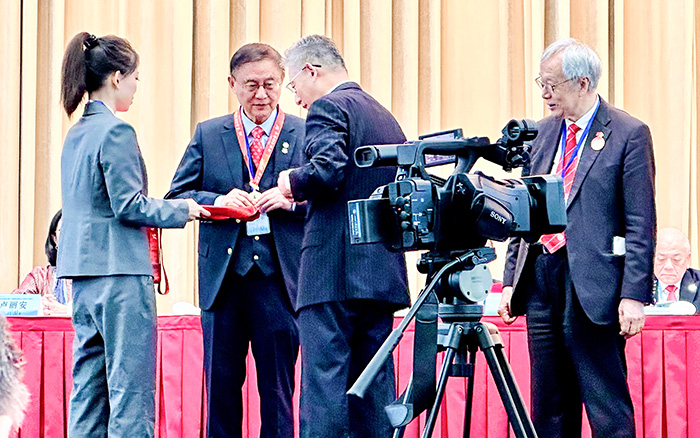 现场,市委统战部部长陈通与原部长沙海林共同为沈小平、单志明等7位在会二十五年的海联会成员颁授纪念章,以表彰他们长期以来对联谊会工作的支持与奉献。