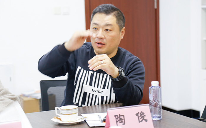 上海尚俊传播有限公司陶俊总经理介绍了公司在品牌传播与明星资源方面的业务优势,并表示愿依托自身专业能力,积极支持校企合作项目推进。